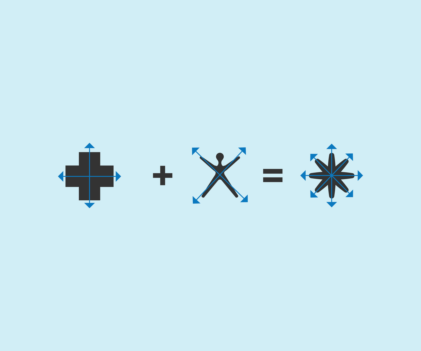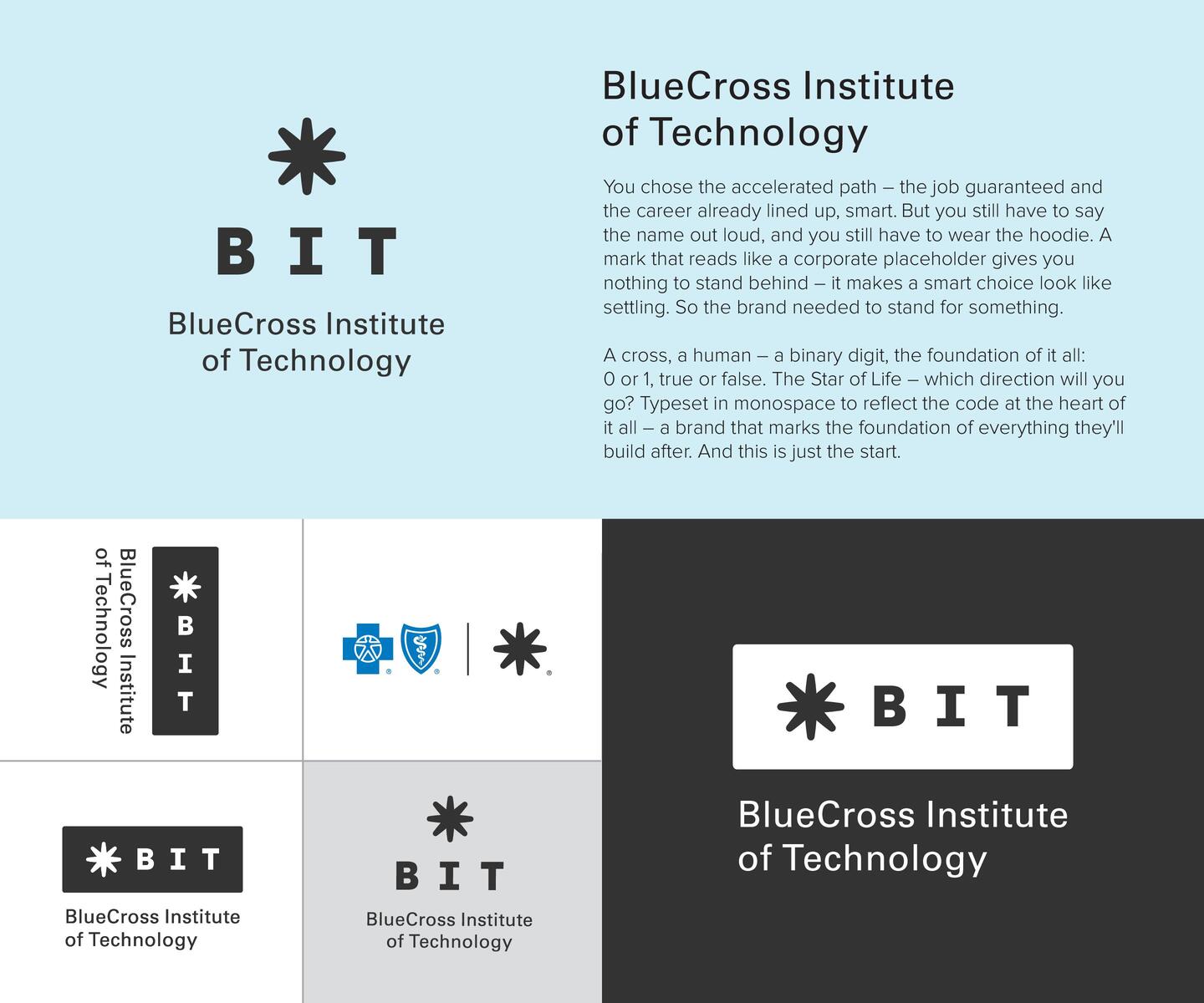 The name already had meaning in it – a bit, the binary digit at the foundation of everything these students would build. The mark had to find that and make it visible. A cross and the Vitruvian man overlaid produce the asterisk: the unit, the Star of Life, the wildcard. Three readings, one symbol.